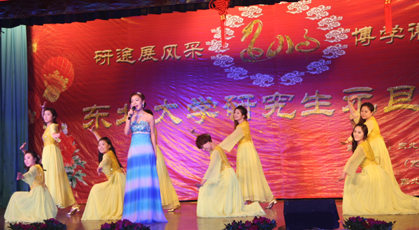 晚会以一曲气势磅礴的《鼓韵》拉开序幕,随后研究生院常务副院长巩恩普致辞,他高度评价了我校研究生一年来辛苦的学习与科研工作,并代表全体老师对在校研究生寄予了美好希望和祝福,代表学校对辛勤工作的老师们表达了诚挚的谢意。