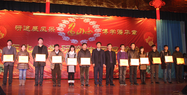 晚会中还穿插了“2012科学道德与学风建设宣讲教育活动”和“我心目中的好导师”颁奖典礼,在2012年的科学道德与学风建设宣讲教育活动中,12个学院(部)开展了形式多样、丰富多彩的活动,均获得了“先进集体”称号。由研究生自行推荐,网络投票和现场投票相结合的“我心目中的好导师”的评选活动,在校园里掀起了尊师重教的热潮,最终王玉涛等15位老师获得了“魅力人气奖”,胡筱敏等15位老师获得了“良师益友奖”。