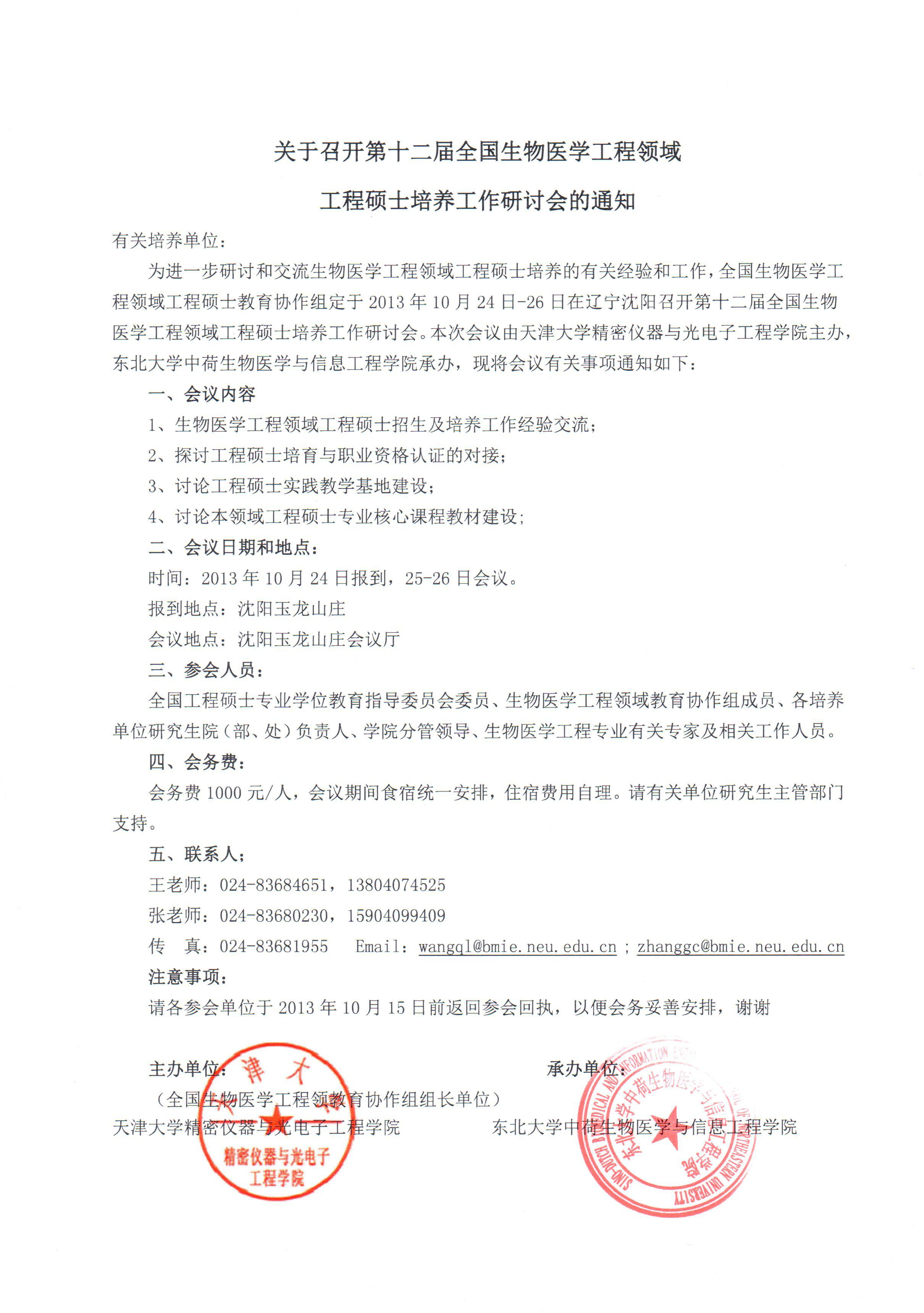 关于召开全国生物医学工程领域研讨会的通知