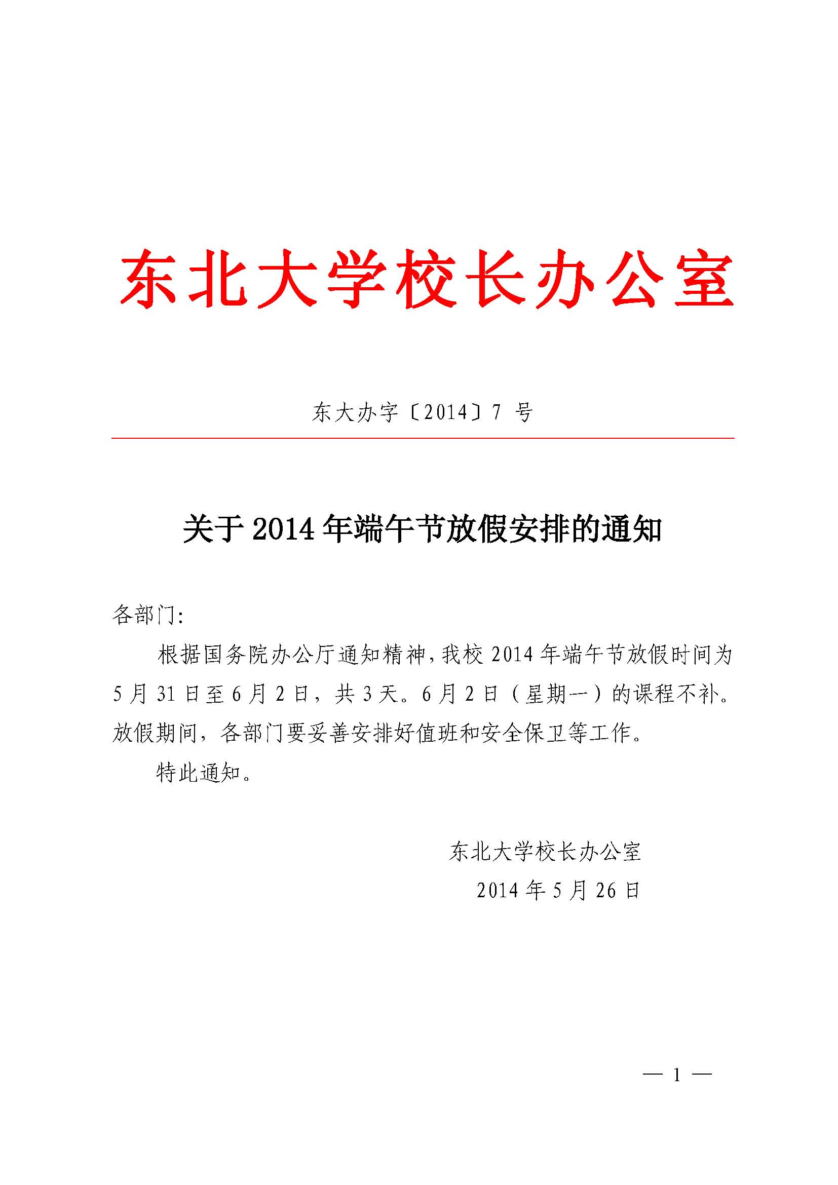 转发《关于2014年端午节放假安排的通知》