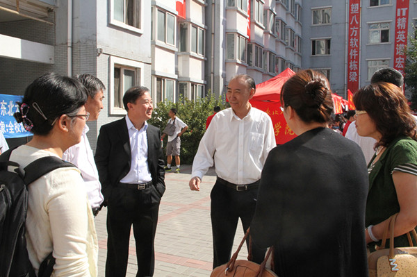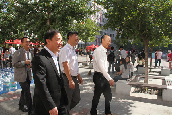 上午9点,校党委书记孙家学、校长赵继、副校长姜茂发等到迎新现场看望前来报到的研究生新生,并慰问参与迎新工作的师生员工。党委办公室、校长办公室、研究生院等相关单位负责人陪同看望。