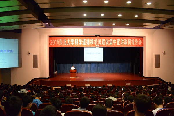 6月11日下午,2015东北大学科学道德和学风建设集中宣讲教育报告会在汉卿会堂蔡冠深报告厅举行,国家自然科学基金委副主任何鸣鸿应邀为我校师生作了以“科研诚信与典型案例”为题的报告。副校长左良主持报告会。