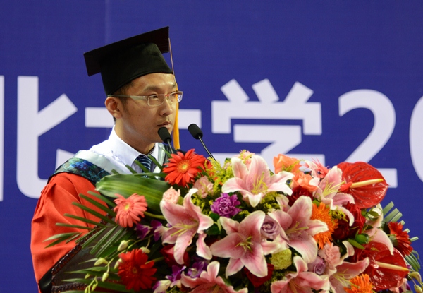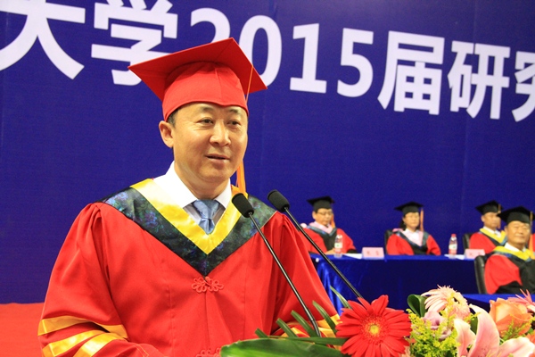 校长赵继在题为“愿母校的基因在你们身上延续”的讲话中表示,同学们以自己的勤奋实现了跨越,以自己的进取创造了价值,以自己的优秀赢得了喝彩,并将承载着更多的期望和梦想,在传承东大精神,矢志报国、为国担当中承担更大的责任和使命。赵继指出,东北大学对学术立校的执着追求、勇于担当的使命抱负、开拓创新的不懈求索,爱国爱校的赤子情怀,是母校能够给予的最优质的文化基因和取之不竭的人文财富。赵继与同学们再次重温了“自强不息、知行合一”的东大精神。赵继表示,自强不息是坚持的勇气,同学们在成长的历程中,应保持终身学习的兴趣和习惯,增强直面困境和挫折的勇气,永不停止前进的脚步,励精图治,追逐梦想;知行合一是创新的根基,在今后的学习、工作、创业及生活中,同学们要保持求新探异的激情和梦想、勇于担当的精英意识和严谨求实的实践精神,成为有思想的行动者、善实践的思想者,实现跨越,成就未来。赵继希望,同学们能够延续母校的基因,成为不忧、不惑、不惧的东大人,在实现中国梦的生动实践中放飞青春梦想,书写人生华章!