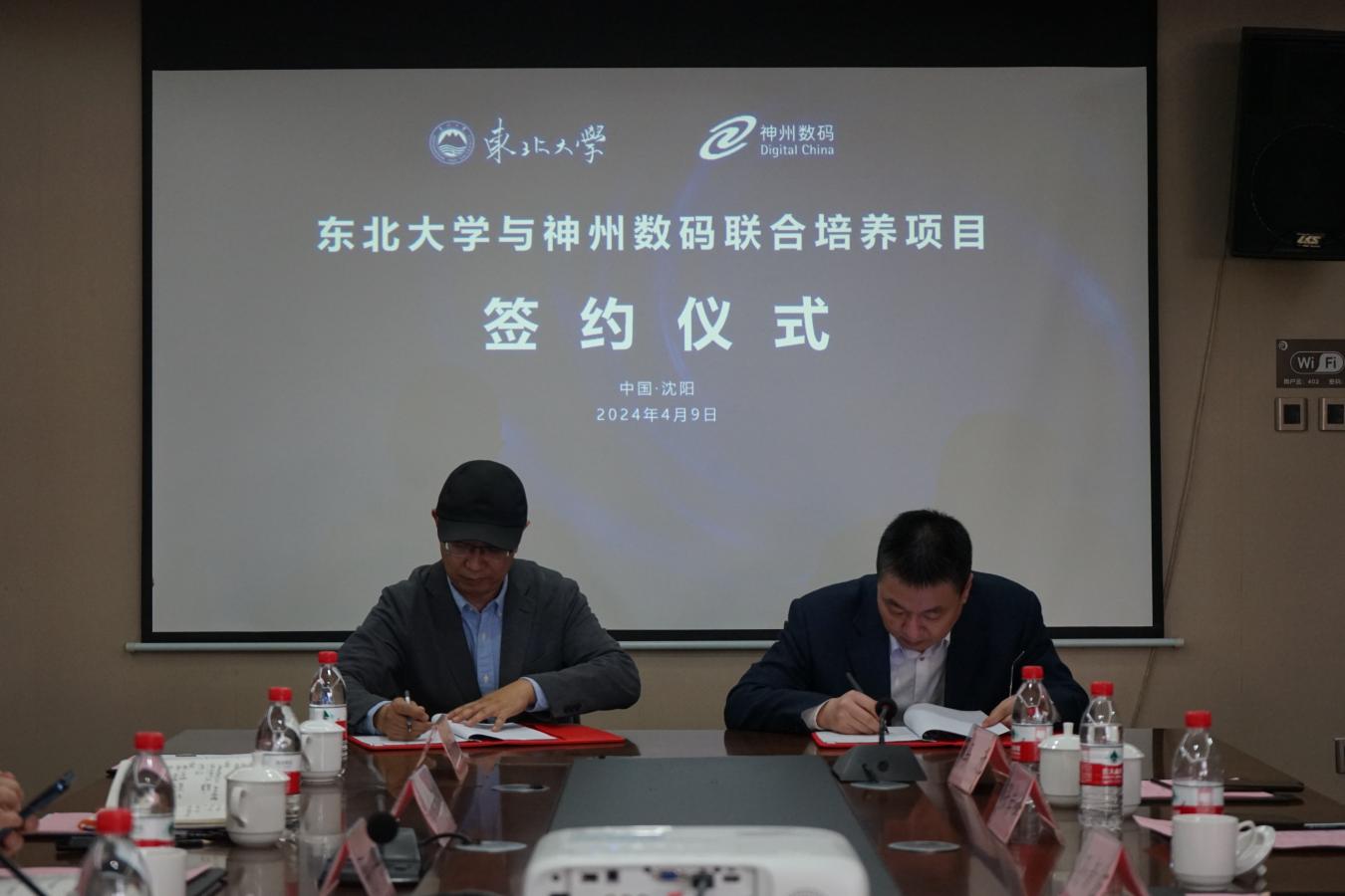 东北大学研究生院常务副院长刘承军、神州数码集团副总裁李刚分别代表东北大学和神州数码集团签订了联合培养研究生项目合作协议。