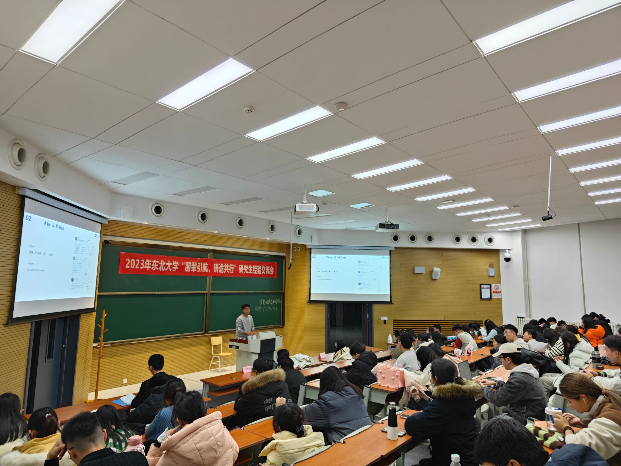 1126日,由东北大学研究生院(党委研究生工作部)主办,研究生科技服务中心承办的“朋辈引航,研途共行”研究生经验交流会在南湖校区何世礼教学馆109室和浑南校区1号教学馆A207室同时举行。本次活动邀请了研究生“科研报国”学习贯彻习近平总书记给东北大学全体师生重要回信精神宣讲团的6名成员进行宣讲。