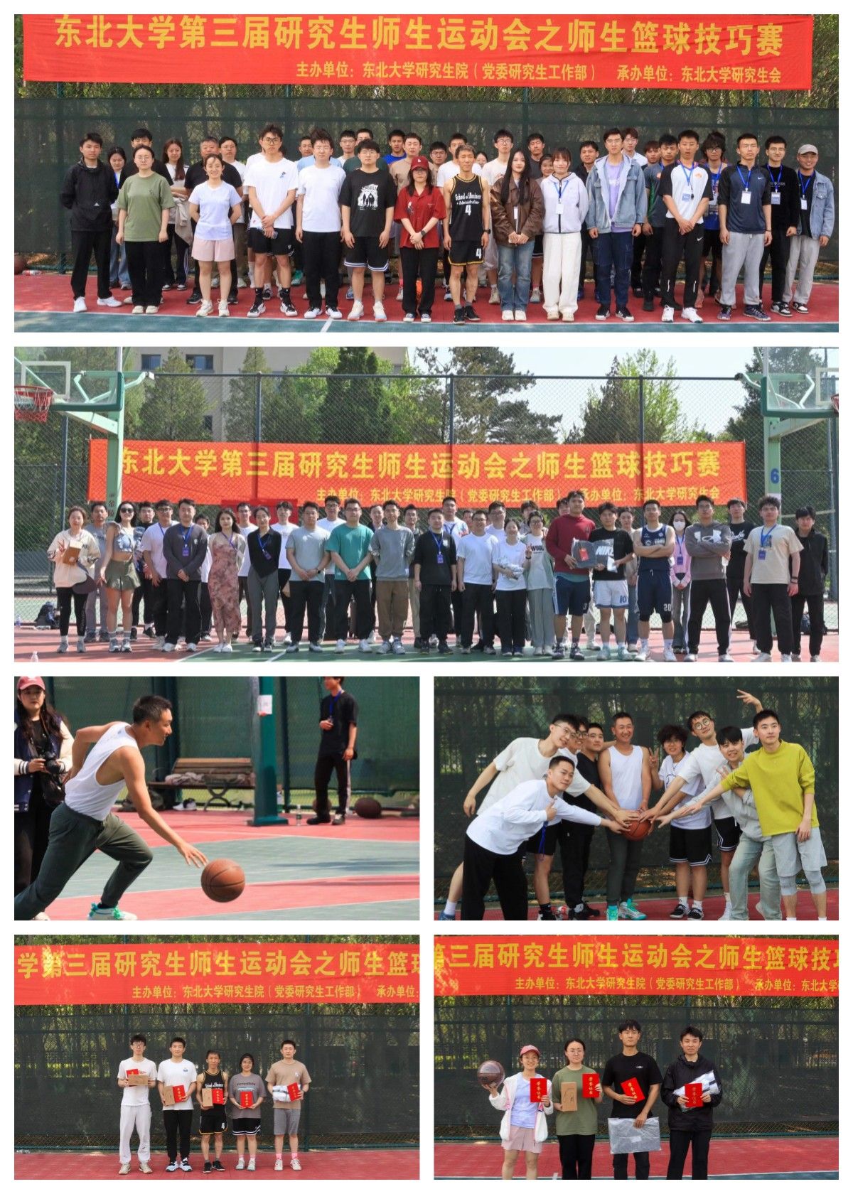 4月27日,由东北大学研究生院(党委研究生工作部)主办,东北大学研究生会承办,体育部和体育场馆中心协办的东北大学第三届研究生师生运动会之师生篮球技巧赛在南湖校区二舍篮球场和浑南校区篮球场举行。