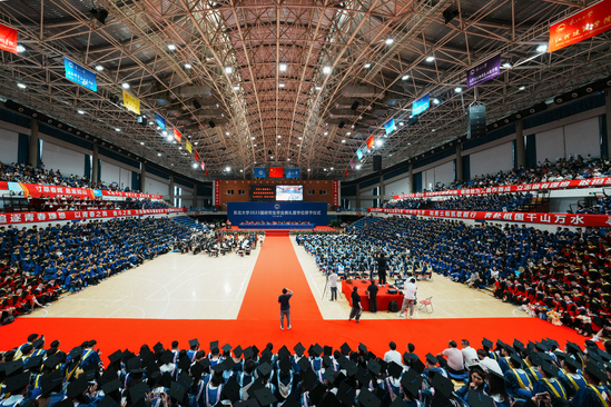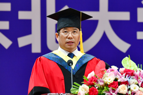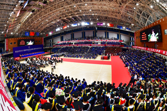 7月5日下午,东北大学2023届研究生毕业典礼暨学位授予仪式在刘长春体育馆隆重举行。党委书记郭海,校长冯夏庭,党委副书记、秦皇岛分校党委书记孙正林,党委副书记王玉琦,党委副书记、纪委书记吴豪伟,副校长孙雷、徐峰、唐立新、王强、王辉、张皓出席典礼。各学院和相关部门负责同志、教师代表、各学院学生工作相关同志以及2023届研究生毕业生参加典礼。毕业典礼由王强主持。
