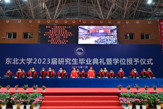 东北大学2023届研究生毕业典礼暨学位授予仪式在雄壮的国歌声中拉开帷幕。