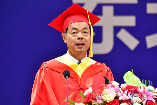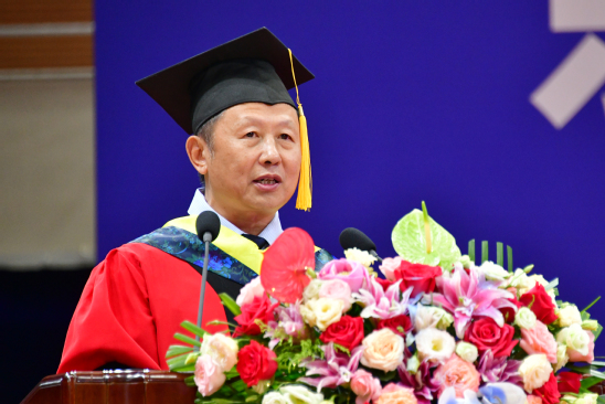 冯夏庭以“心怀东大 奔赴山海”为题致辞。冯夏庭代表学校向2023届获得学位的研究生表示真诚的祝贺,向辛勤培育他们的导师致以崇高的敬意,向关注学校发展、关爱学生成长的家长和朋友们表示衷心的感谢。冯夏庭表示,同学们是东北大学新一轮一流大学建设进程中的参与者、见证者,更是推动者、创造者。冯夏庭指出,在建校一百周年的历史节点上,同学们即将带着“爱校、爱乡、爱国、爱人类”的大爱情怀和“自强不息、知行合一”的校训精神赋予的崇高志向开启新的人生之旅,希望同学们以自强不息的态度对待事业,坚定必胜信念,将个人志向与国家前途命运紧密相连,担负起国家高水平科技自立自强的栋梁之责;希望同学们以知行合一的品格面对生活,加强自身修养、陶冶高尚情操、涵养家国情怀,始终把握正确的人生方向,不负韶华,奋楫远航,在新的人生赛道上跑出好成绩,为东大精神的传承写下新的一页。冯夏庭邀请同学们在9月16日母校百年华诞之际重回校园聚首,东北大学将敞开怀抱,欢迎同学们回家。
