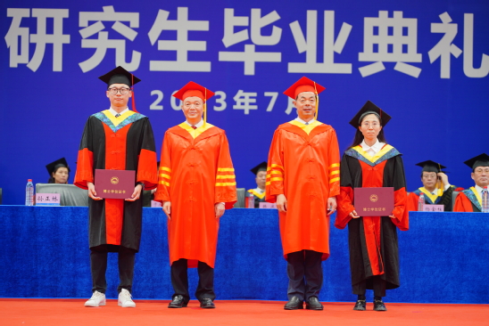 郭海、冯夏庭为博士毕业生颁发学位证书。与会领导为硕士毕业生颁发学位证书。