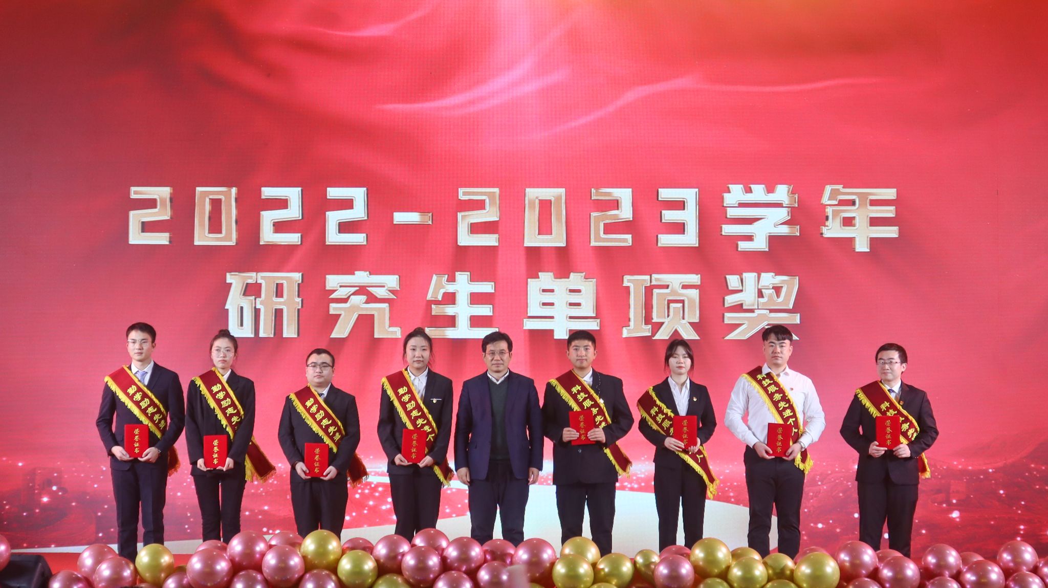 在颁奖环节,冯夏庭为获得东北大学第六届“我心目中的好导师”的研究生导师颁发证书和奖杯,王强为获得2022—2023学年东北大学研究生科技服务先进个人和勤学励志先进个人的研究生颁奖,王辉为获得2022—2023学年东北大学研究生文体艺术先进个人和社会工作先进个人的研究生颁奖。