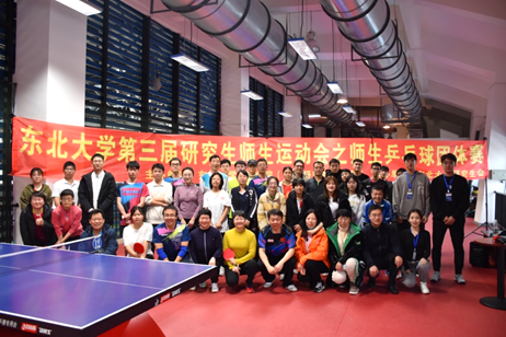 11月26日,由东北大学研究生院(党委研究生工作部)主办、校研究生会承办、体育部和体育场馆中心协办的东北大学第三届研究生师生运动会之乒乓球团体赛在浑南校区风雨操场举行。