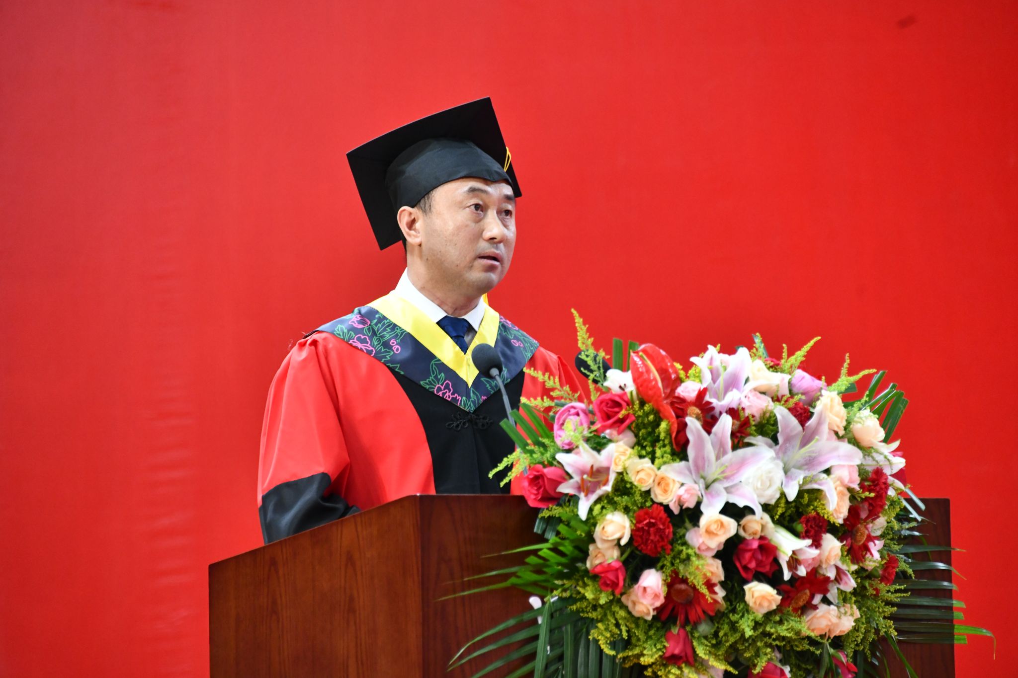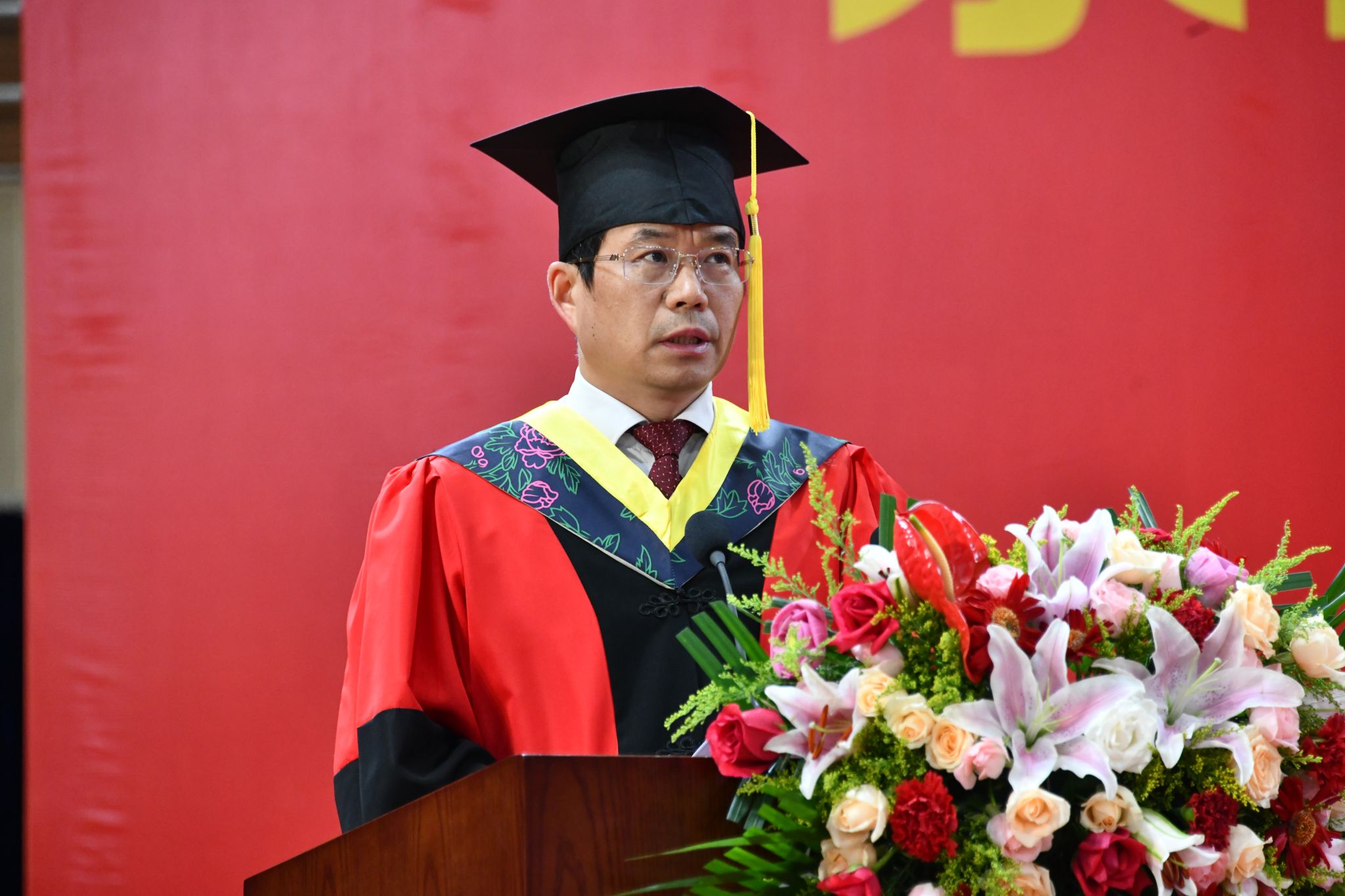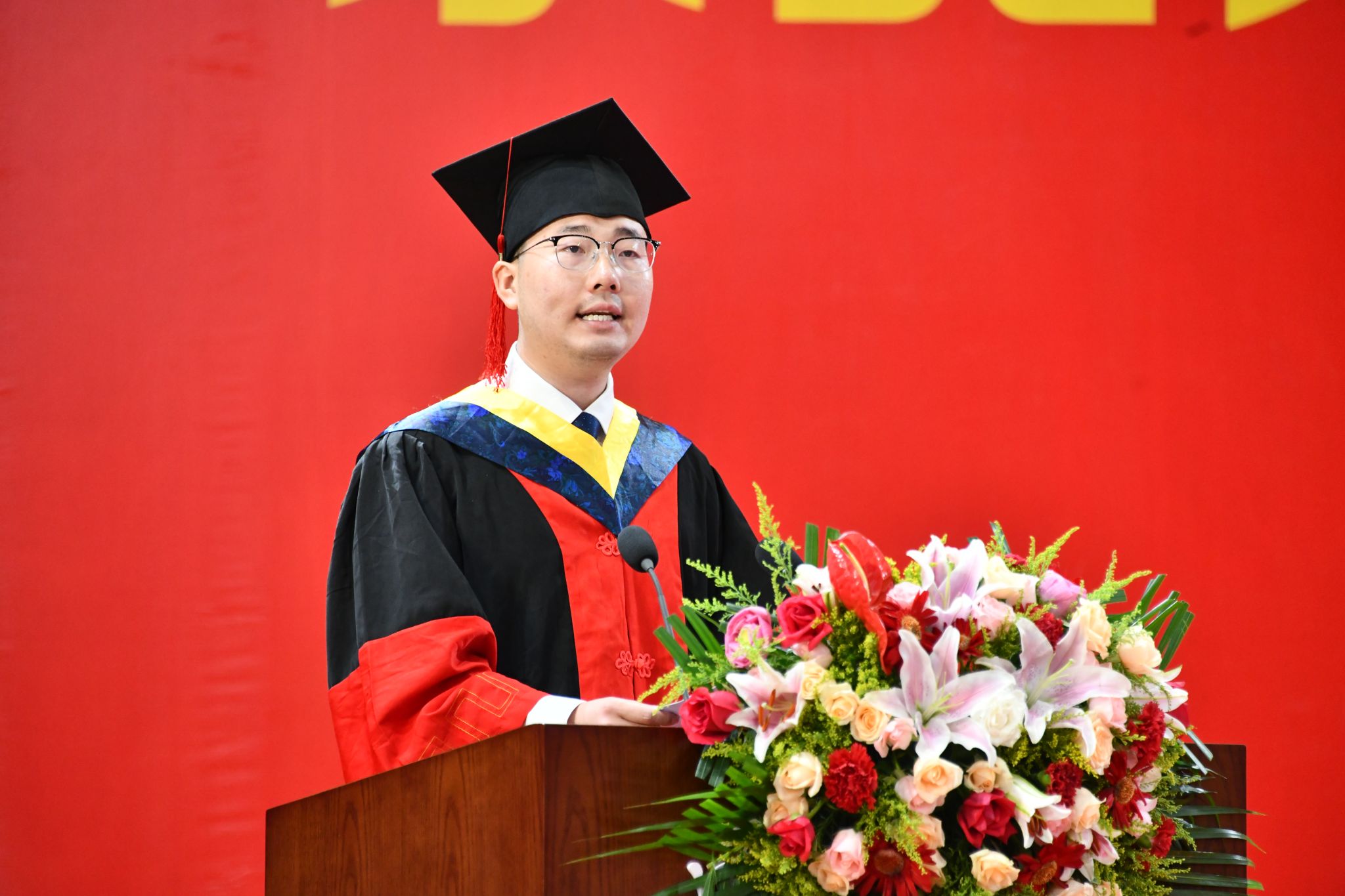 路鹏冲带领全体毕业研究生送出祝福,祝福父母身心同康,春晖绵长;祝福师长学术长青,桃李满疆;祝福母校硕果累累,永谱华章;祝福党和祖国繁荣昌盛,国富民强。
