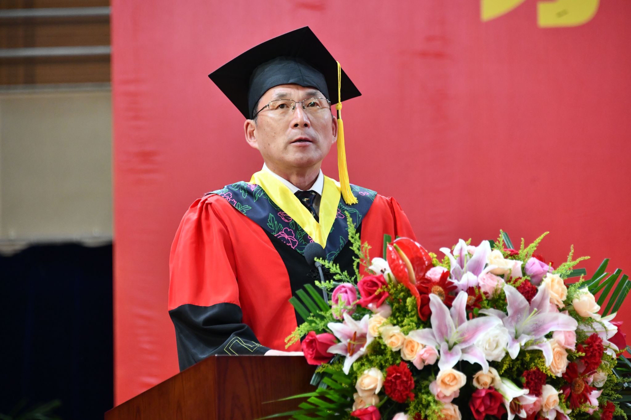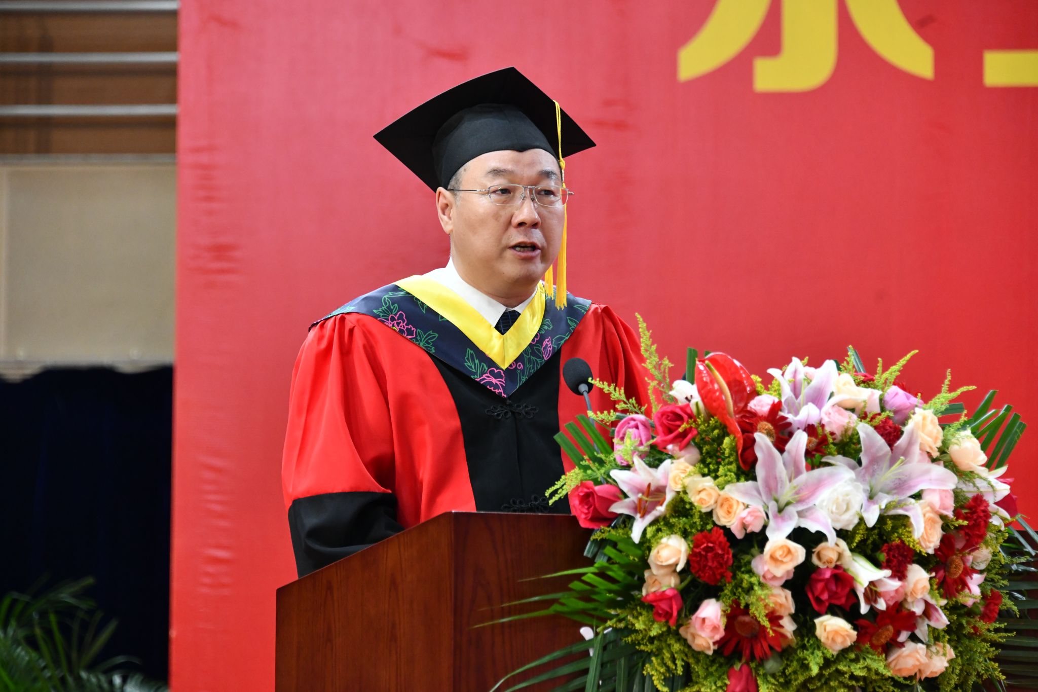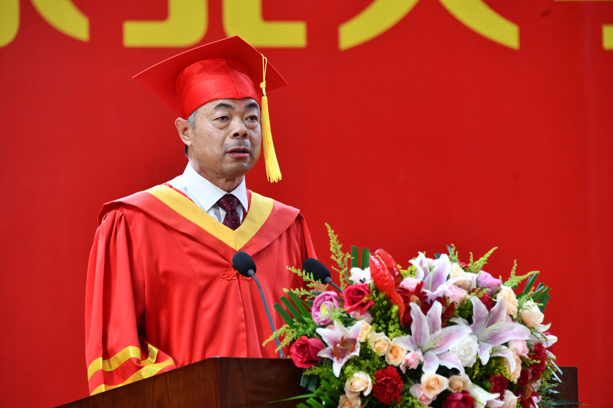 路鹏冲带领全体毕业研究生送出祝福,祝福父母身心同康,春晖绵长;祝福师长学术长青,桃李满疆;祝福母校硕果累累,永谱华章;祝福党和祖国繁荣昌盛,国富民强。