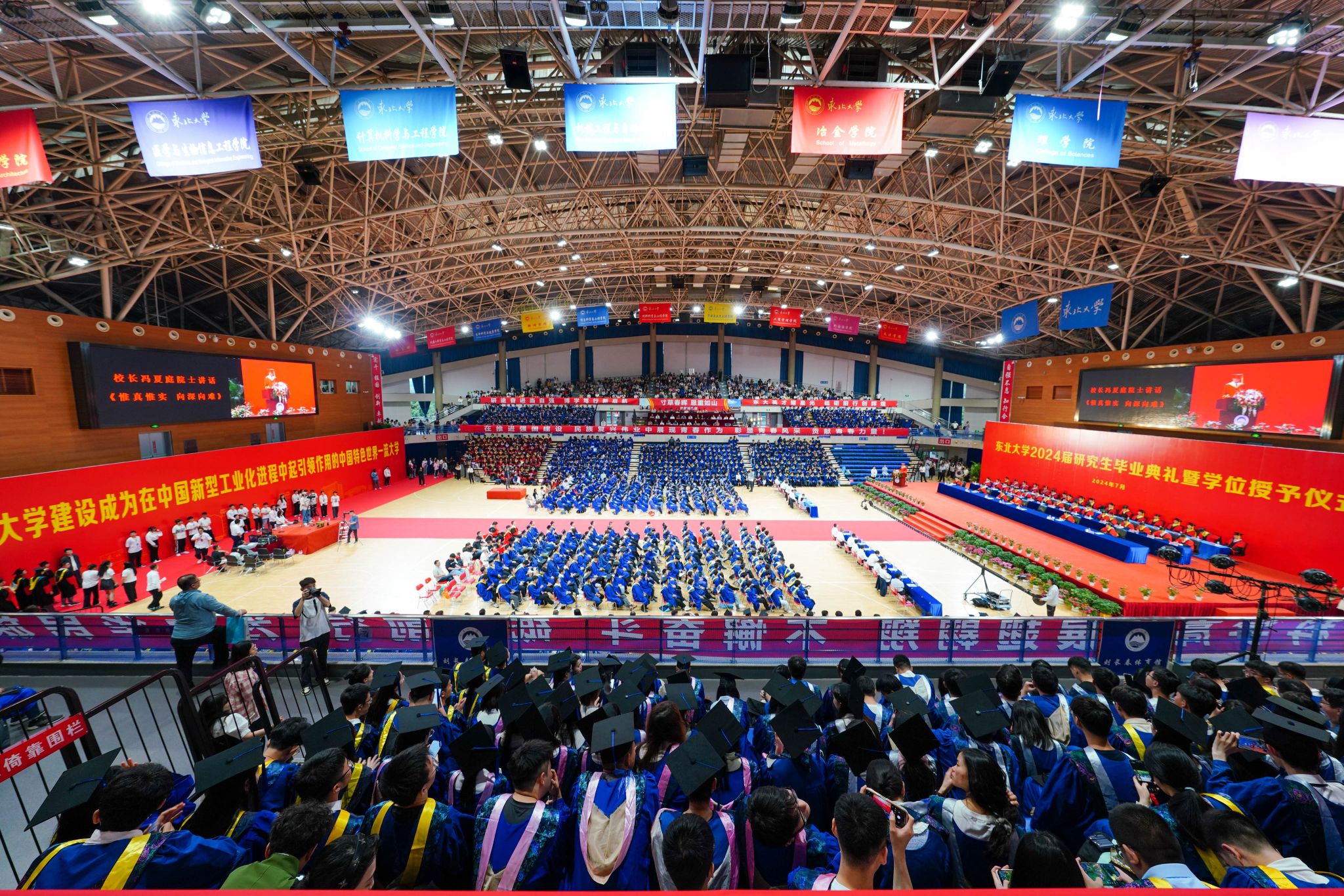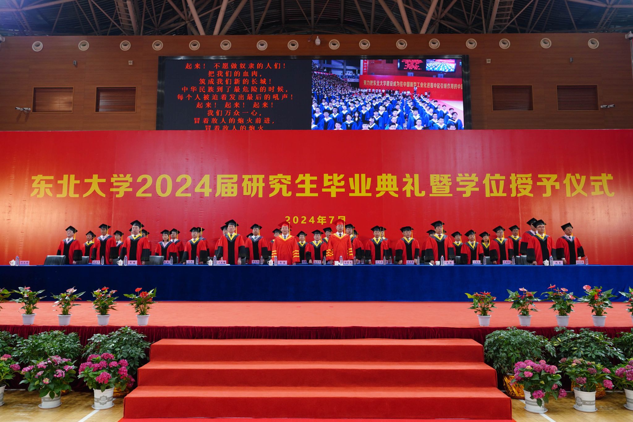 东北大学2024届研究生毕业典礼暨学位授予仪式在雄壮的国歌声中拉开帷幕。