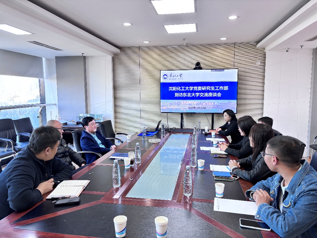 10月23日,沈阳化工大学党委研究生工作部部长杨海霞一行到校调研研究生思想政治教育和管理工作。东北大学研究生院副院长兼党委研究生工作部部长丁义浩、研究生院教育管理办公室主任欧阳恒岳及相关负责同志参加座谈。
