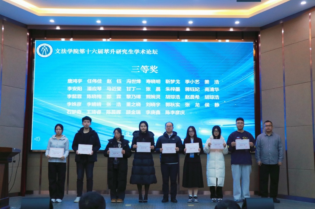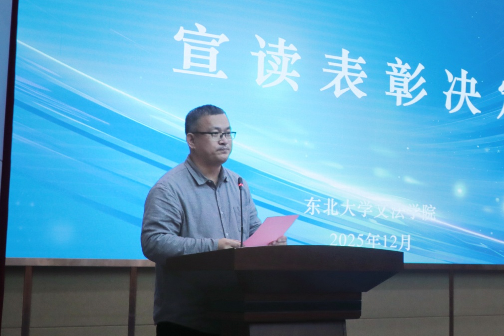 孙宏伟宣读《关于表彰东北大学文法学院第十六届萃升研究生学术论坛优秀论文的决定》,向获奖同学表示祝贺,并对所有研究生同学提出期望。