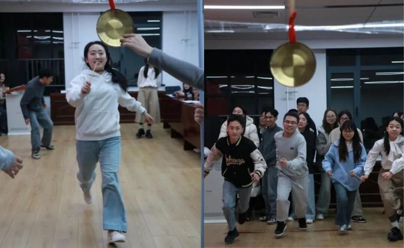 决赛共设置三个环节,按照累计得分评定最终成绩。第一轮“凝心共济”为接力计时赛,重点考察团队协作与知识衔接能力;第二轮“锋芒对决”为分组抢答赛,充分检验选手们的反应速度与知识广度;第三轮“谁与争锋”为个人MVP争夺赛,各队伍分别派1名队员同台竞技,围绕10道题目展开抢答。选手率先跑至指定位置并敲响铜锣,即可获得答题权,紧张刺激的比拼瞬间将现场氛围推向高潮。